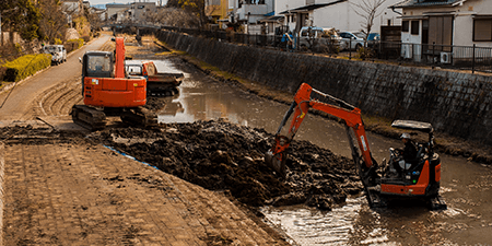 河川での治水、利水の環境保全がなされるよう、維持管理する上での整備工事を致します。堤防の決壊を防ぐため、コンクリートブロックなどを積むなどして護岸を設けるなど、堤防が崩されたりするのを防ぎます。